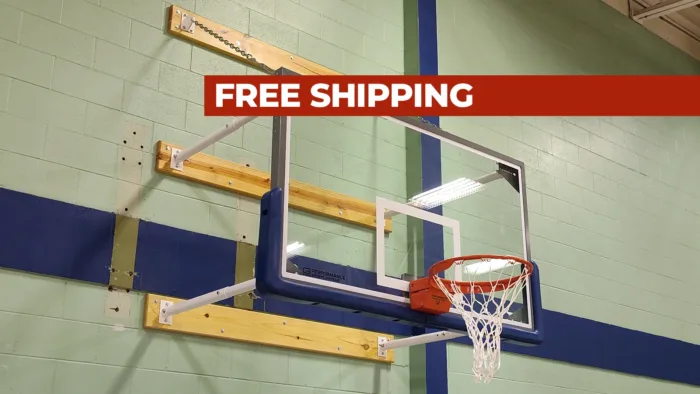 FREE SHIPPING – The Stationary Wall Mount Basketball Hoop Four-Point 3′-4′ Face of Bank is ideal for any gym in which the goal will be within 3′ – 4′ from the wall. This unit is approved for use for all levels of play. Indeed, this system meets NBA, NCAA, FIBA, NFHS, & IBL requirements for competitive play.