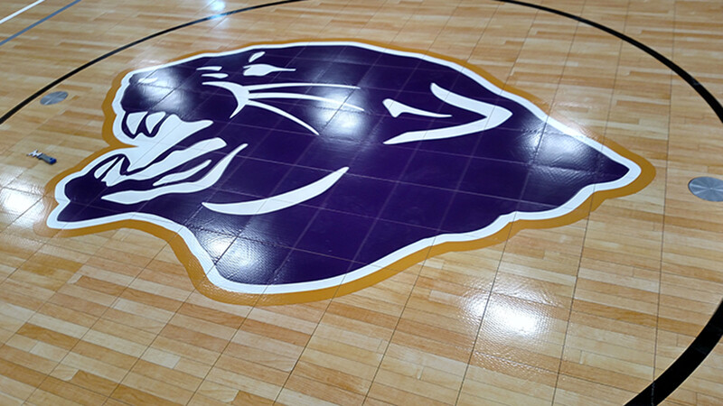 Unique to Navarro’s new tournament gym, is the digitally printed center court artwork. For decades, artwork has been painted on gym floors. Painting is a time consuming and costly process. Sport Court® has pioneered a process of digitally printing the artwork onto the floor prior to shipping the floor to the project site. This option is only available on Sport Court® Response High Gloss gym flooring. At the time of this post, fewer than half a dozen gyms have digitally printed artwork on their gym floors.